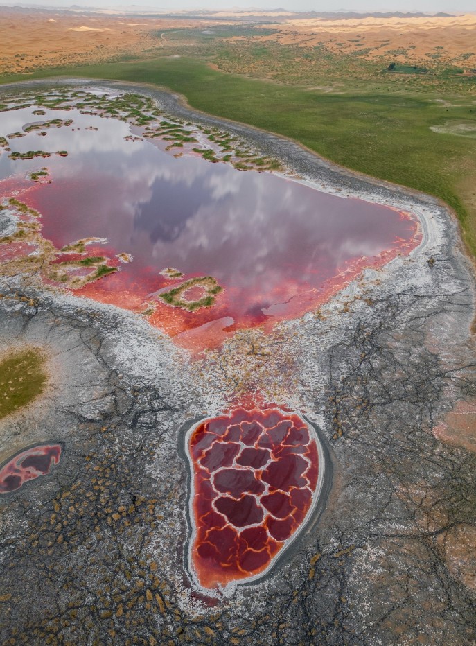航拍视角:解锁沙湖交织的上帝视角