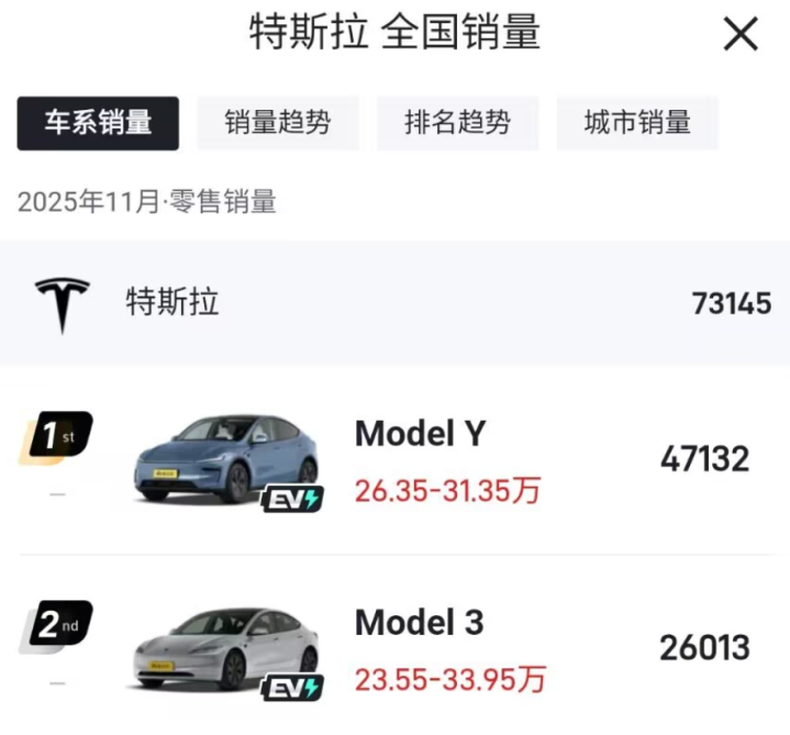 万万没想到啊!特斯拉又给我们搞这一出,11月份特斯拉Model 3、Y两台车,累计销量超7万3千台,双车狂砍超7万台销量。